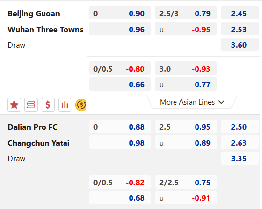Chốt kèo: Wuhan Three Towns +0 cả trận. Tài 2 3/4 cả trận