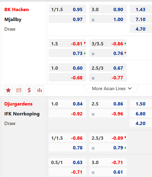 Biến động kèo đến sát giờ bóng lăn cho thấy Hacken sụt giảm đáng kể khi kèo chấp 1 1/2 đã bị điều chỉnh xuống còn chấp 1 1/4 trên thị trường hiện nay. Thế nên, giới phân tích đáng hướng vào khả năng Mjallby sẽ có điểm ở trận đấu này.