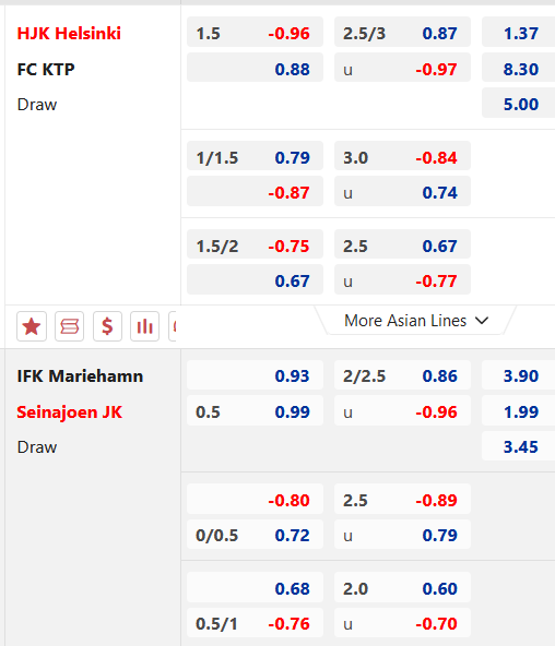 Kèo chấp 1/2 cùng lợi điểm cân bằng giữa các lựa chọn đối lập như lời đảm bảo cho Seinajoen có được chiến thắng dù họ phải làm khách.