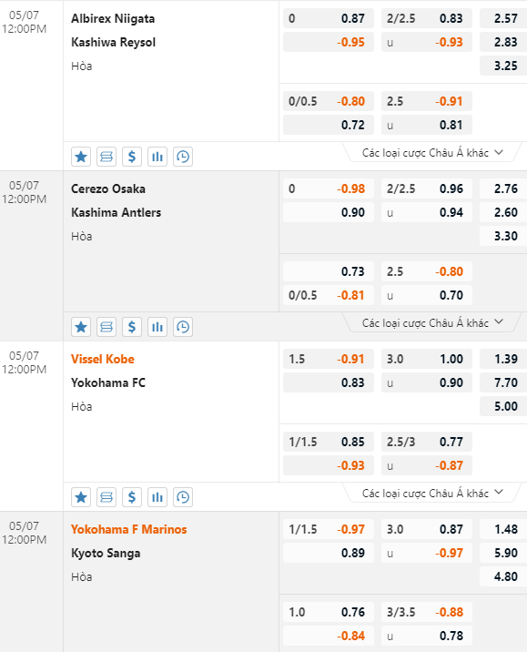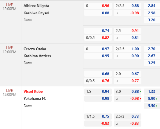 * Vissel Kobe vs Yokohama FC: Vissel Kobe tăng giá khi kèo chấp 1 1/2 của họ ghi nhận điểm ăn cân bằng, thay vì bỏ sâu. Vissel Kobe vẫn duy trì sự ổn định tại J-League trong khi Yokohama FC ngụp lặn ở vị trí cuối cùng.