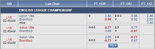 Trong những diễn biến mới nhất, trước thời điểm trận đấu giữa Aston Villa và Brenford diễn ra, niềm tin dành cho đội chủ nhà tiếp tục giảm sút khi mức cháp -1/4 đã bị đánh hạ xuống chỉ còn hòa được thua, cùng với đó là điểm ăn đang khá cân bằng. Vì thế, đội khách mới mang lại nhiều hy vọng ở trận này.