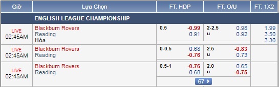 * Chốt kèo trận Blackburn vs Reading, 01h45 (23/8)