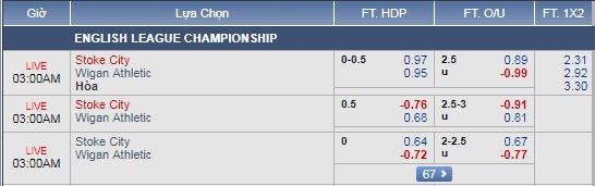 Ở trận đấu này, mức tỷ lệ chấp của đội chủ nhà Stoke City vẫn được giữ nguyên ở mức -1/4 nhưng điểm ăn đã có những thay đổi rõ rệt với xu hướng tăng mạnh ở mã chủ nhà và giảm ở chiều ngược lại đang tạo ra nhiều hơn hy vọng cho đội khách. Trong khi đó, phía tổng bàn thắng cả trận cũng đã có những thay đổi khi mức 2 1/2 vẫn được giữ nguyên cho cả trận, đây được đánh giá là mức khá cao, chưa kể diễn biến từ việc thang điểm ăn đang có xu hướng giảm ở cửa Xỉu và giảm ở chiều ngược lại cũng đang tạo ra kỳ vọng cho 1 cuộc đối đầu bùng nổ tới đây.