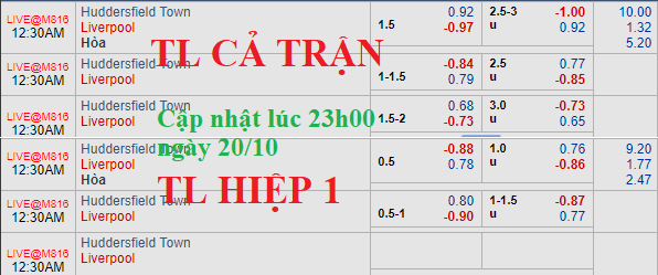 So với phiên khớp lệnh lúc 9h sáng nay 20/10, tỷ lệ chính vẫn giữ ở mức Liverpool chấp 1 1/2 còn mốc tài xỉu đã tăng từ 2 1/2 lên thành 2 3/4. Trong bối cảnh thiếu Sadio Mane mà The Kop vẫn giữ được mức chấp như vậy thì rõ ràng họ là cửa đáng để đầu tư.