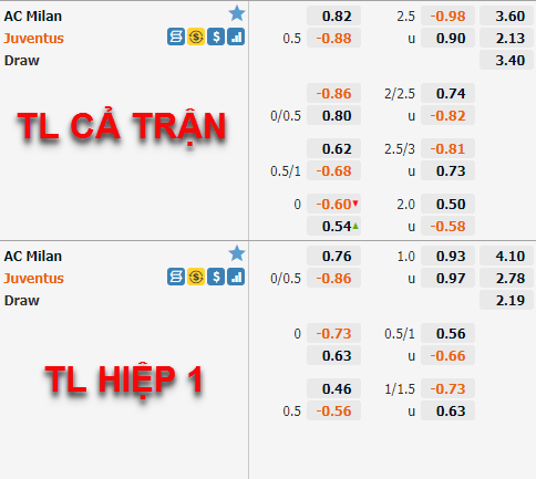 Tỷ lệ của Juventus liên tiếp tăng điểm thời gian qua trên sàn giao dịch châu Á. Hiện tại Juventus đang có tỷ lệ chấp chính là 1/2 và mức điểm bỏ thay cho mức 0:0 ở lần chúng tôi cập nhật trước đây. Trong khi đó tỷ lệ tài xỉu của trận đấu lại có xu hướng giảm điểm khi mốc 2 3/4 trước đây đã được kèo xuống mức 2 1/2 hiện tại.