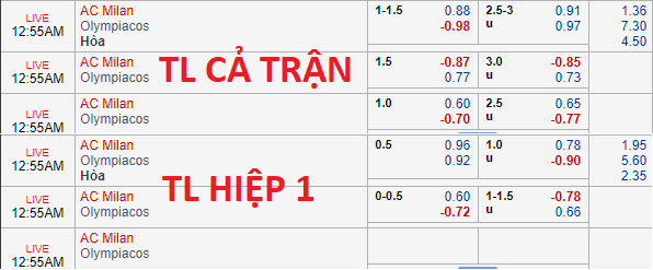 AEGoal.net chốt kèo trực tiếp trận AC Milan vs Olympiakos sau khi dựa trên tính toán, chuyển động về kèo châu Á và đội hình ra sân của 2 đội.