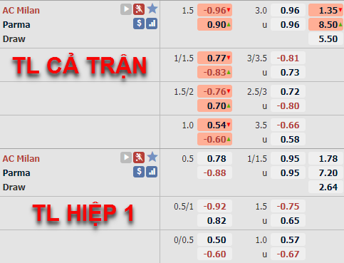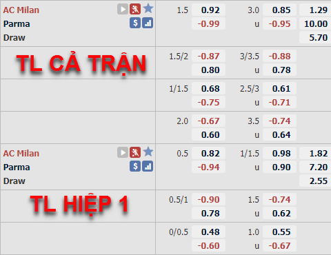 Parma +1 1/2 cả trận