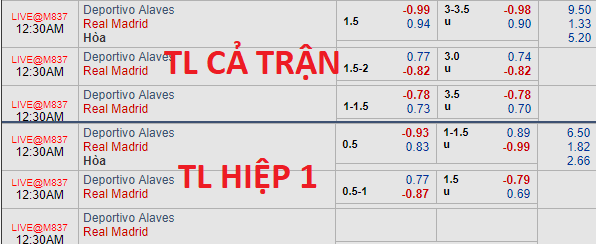 Sự có mặt của Bale ở đội hình xuất phát khiến niềm tin dành cho Real lớn hơn. So với thời điểm sáng ngày hôm nay (06/10) thì điểm ăn cho cửa trên của Real ở kèo chấp 1 1/2 có giảm từ mức bỏ xuống còn 0.94. Trong khi đó, mốc tài xỉu lại có xu hướng tăng nhẹ từ 3 hòa lên thành 3 1/4 với điểm bỏ cho mốc trên.