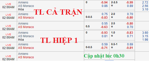 Chốt kèo trực tiếp trận Amiens vs Monaco (01h00):