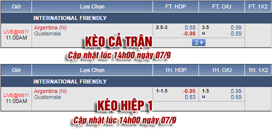 Chốt kèo trực tiếp trận Argentina vs Guatemala (10h00)
