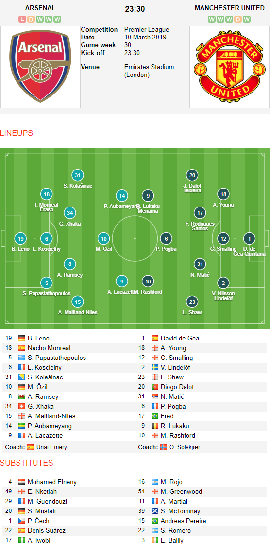 AEGoal.net chốt kèo trực tiếp trận Arsenal vs MU diễn ra lúc 23h30 ngày 10/03 sau khi dựa trên tính toán, chuyển động về kèo châu Á và đội hình ra sân của 2 đội.