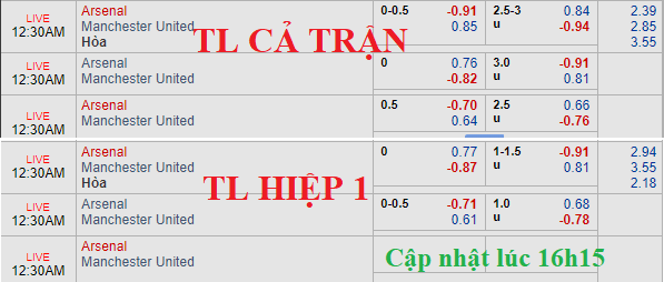 CHỐT KÈO TRỰC TIẾP trận Arsenal vs MU (23h30)