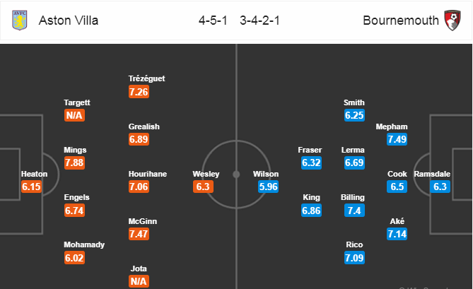 Đôi bên đều tung vào sân những cầu thủ tấn công tốt nhất của mình, Aston Villa chơi với đội hình 4-3-3 trong khi bên phía Bournemouth, Wilson, King hay Fraser đều góp mặt. Với đội hình và tỷ lệ như vậy thì nên tin vào cửa tài.