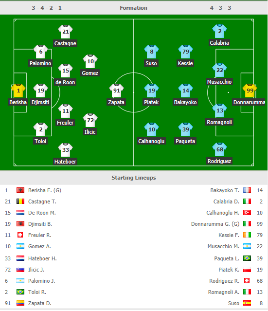 AC Milan: Không có sự phục vụ của Zapata, Mattia Caldara và Bonaventura vì chấn thương.