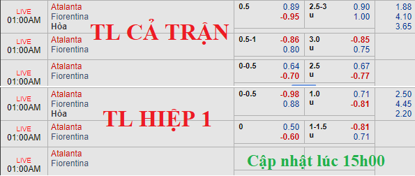Đội chủ nhà Atalanta vẫn được nhà cái châu Á giữ tỷ lệ chấp ở mức 1/2 cho trận đấu này như thời điểm chúng tôi cập nhật chiều nay nhưng mức điểm ăn của cửa trên đã được điều chỉnh giảm. Đây là một dấu hiệu tốt cho đội chủ nhà. Mặc dù 3 trận đấu gần nhất Atalanta không thắng, họ thua 2 trận và 1 trận hòa với chính đối thủ Fiorentina trên sân khách nhưng nhìn vào biến động của thị trường cho thấy giới cầm cân nảy mức vẫn có nhiều niềm tin vào chiến thắng của đội chủ nhà.