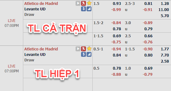 Trong những diễn biến mới nhất trên sàn giao dịch châu Á, mức chấp -1 1/2 của Atletico Madrid vẫn được giữ ổn định cho đến sát thời điểm bóng lăn, tuy nhiên thang lợi nhuận đã có những thay đổi khi điểm ăn của đội khách đã có xu hướng giảm và tăng ở chiều ngược lại. Trong khi đó, mốc tổng bàn thắng cả trận đã được đẩy từ 2 3/4 lên 3 hòa cùng điểm ăn đang có phần thấp hơn ở cửa Xỉu.