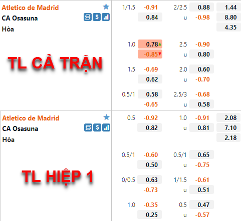 Trên sàn giao dịch châu Á với kèo chấp giảm từ 1 1/4 xuống còn 1 hoà, rõ ràng là những nghi ngại càng tăng cao cho Atletico Madrid. Trong khi ở kèo tổng bàn thắng, với mức 2 1/4 vẫn giữ nguyên cùng điểm ăn thấp cho cửa Xỉu, mốc dưới cũng được xem là an toàn hơn.