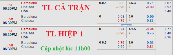 Về cơ bản, với đội hình như hiện tại, Barcelona dễ chiếm được cảm tình của giới mộ điệu hơn. Tuy nhiên, các chuyên gia nhận thấy tỷ lệ trên sàn châu Á đang có diễn biến thiếu tích cực cho lựa chọn cửa trên. Có thời điểm gã khổng lồ xứ Catalan lên chấp kèo chính 1/2 nhưng đến thời điểm trận đấu chuẩn bị diễn ra bị đưa về mốc ban đầu chấp 1/4. Đây rõ ràng là tỷ lệ không mấy khả quan cho Barcelona.