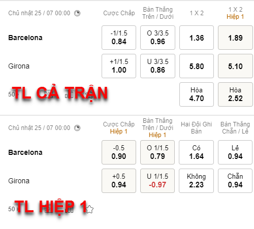 Trên sàn châu Á, Barcelona vẫn chấp 1 1/4 nhưng điểm ăn đã tăng lên so với đầu giờ chiều nay. Trong khi đó, mức tài xỉu 3 1/4 chưa có biến động đáng kể nào. Với những cái tên đá chính, không dễ cho Barcelona có thể tạo ra chiến thắng đậm trận này.