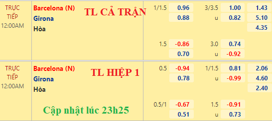 Chốt kèo trực tiếp trận Barcelona vs Girona (00h00):