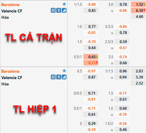 Tỷ lệ chấp của Barcelona có xu hướng tăng điểm. Mức chấp 1 hoà ở lần chúng tôi cập nhất trước đây đã được nhà cái châu Á đẩy lên mức 1 1/4 ở thời điểm hiện tại. Tỷ lệ tài xỉu của trận đấu cũng có diễn biến tương tự, mốc 3 hoà đã thay thể mốc 2 3/4 trước đây để làm mức tỷ lệ chính của trận đấu.
