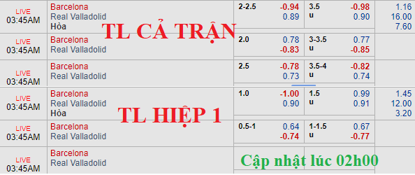 AEGoal.net chốt kèo trực tiếp trận Barcelona vs Valladolid diễn ra lúc 02h45 ngày 17/02 sau khi dựa trên tính toán, chuyển động về kèo châu Á và đội hình ra sân của 2 đội.