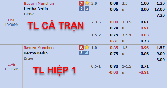 Sự trở lại của Ribery trong đội hình xuất phát và Muller, Thiago và Coman ngồi ghế dự bị đã khiến cửa trên sụt giảm đáng kể trên sàn châu Á. Kèo chấp 2 hòa với lợi điểm cân bằng từ đầu phiên đã bị điều chỉnh xuống bỏ khá sâu vào lúc bóng chuẩn bị lăn.