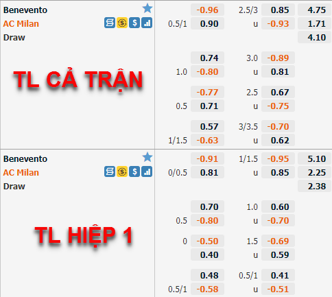 Tham khảo: AC Milan -1/4 Hiệp 1