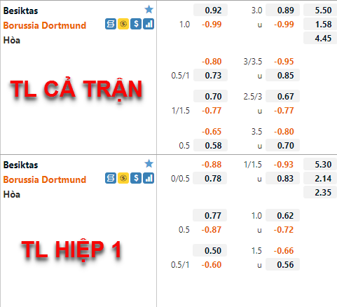 * Chốt kèo trận Besiktas vs Dortmund (23h45 ngày 15/9)