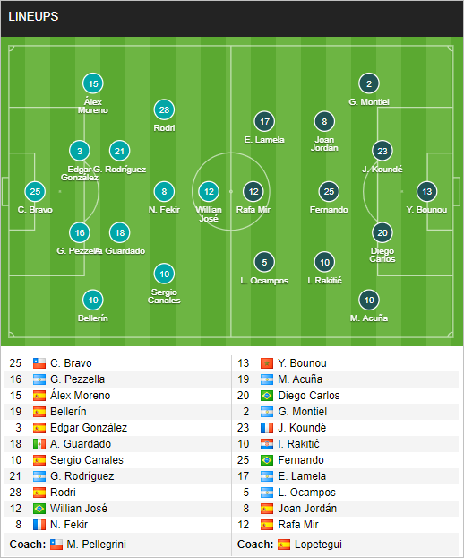 - Sevilla: Jesus Navas là mối bận tâm lớn nhất về chấn thương; trong khi Papu Gomez vẫn chưa chắc chắn có mặt.