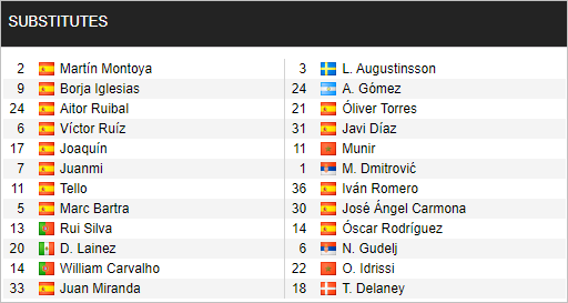 - Betis: Youssouf Sabaly vắng mặt vì chấn thương; trong khi Victor Camarasa vẫn chưa chắc chắn ra sân.
