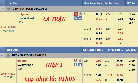 Chốt kèo trực tiếp trận Bỉ vs Thụy Sỹ (01h45)