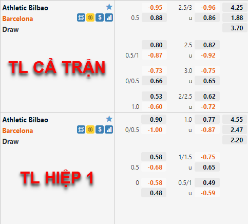 Trên sàn giao dịch châu Á, diễn biến mới nhất cũng tạo ra niềm tin cho Barcelona khi mức chấp của họ đã được tăng lên 3/4. Trong bối cảnh vẫn bị nghi ngờ, mức chấp như vậy là không tệ chút nào và niềm tin cho họ là hoàn toàn có cơ sở. Còn với kèo tổng bàn thắng, bên cạnh việc vẫn đang duy trì mức 2 3/4, điểm ăn ở cửa Tài còn giảm mạnh, vậy nên hy vọng cho kịch bản tưng bừng của trận đấu là có cơ sở.