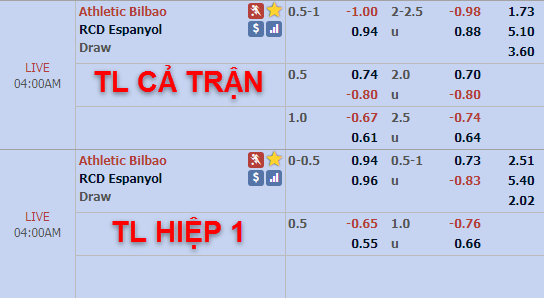 Với diễn biến về lực lượng như vậy, các nhà cái tiếp tục đánh giá thấp khả năng có điểm của Espanyol khi điểm ăn ở kèo được chấp 3/4 ngày càng đưa xuống mức bỏ. Theo đánh giá của giới phân tích, trong hoàn cảnh không có sự chênh lệch lớn về thành tích từ đầu mùa giữa 2 đội, tỷ lệ trên vẫn duy trì và tăng nhẹ là tín hiệu đáng hy vọng vào Bilbao.