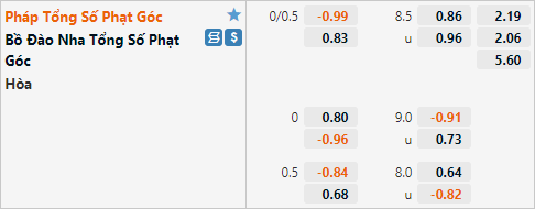 Tỷ lệ tài xỉu phạt góc của trận đấu đang được nhà cái công khai ở mức 8 1/2 đây là mức tỷ lệ tương đồng với mặt bằng chung của giải đấu và không có gi bất thường. Với những phán đoán ở trên thì ở trận đấu này ĐT Pháp có nhiều động lực thi đấu hơn, với lực lượng nhỉnh hơn đối thủ khả năng ĐT Pháp sẽ là đội kiểm soát thế trận. Lối chơi hiện tại của Pháp không đem lại nhiều tình huống phạt góc, do đó lựa chọn cửa xỉu sẽ là lựa chọn tốt trận này