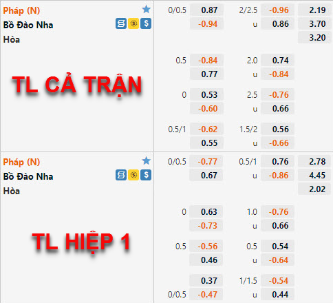 CẬP NHẬT TỶ LỆ HIỆP 2