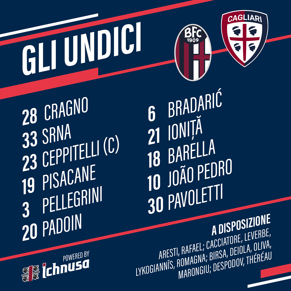* Cagliari: Lucas Castro, Ragnar Klavan và Alberto Cerri chấn thương trong khi Paolo Farago và Luca Cigarini bị treo giò.