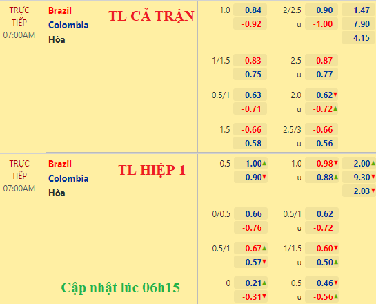 Chốt kèo trực tiếp trận Brazil vs Colombia (07h00):
