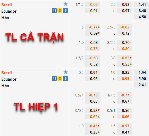 Tỷ lệ chấp chính của Brazil trên sàn giao dịch châu Á vẫn đang được duy trì ở mức 1 1/4 như thời điểm chúng tôi cập nhật trước nhưng điểm ăn của cửa trên đã được điều chỉnh tăng khà nhiều. Bên phía tỷ lệ tài xỉu của trận đấu cũng có những diễn biến cùng chiều khi mốc chính 2 3/4 trước đây đã được nhà cái châu Á thay thế bằng mốc 2 1/2 ở thời điểm hiện tại.