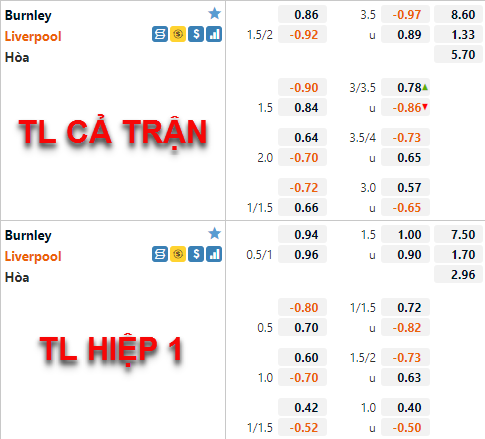 Tỷ lệ chấp của Liverpool đang có xu hướng giảm điểm. Hiện tại tỷ lệ chấp chính của đội khách vẫn đang ở mức 1 3/4 nhưng điểm ăn của cửa trên đã được nhà cái châu Á điều chỉnh tăng rõ rệt. Bên phía tỷ lệ tài xỉu cũng có diễn biến tương tự khi mốc 3 1/2 vẫn là mốc chính của trận đấu nhưng điểm ăn của cửa xỉu đã được điều chỉnh giảm tương đối nhiều so với lần chúng tôi cập nhật trước đây.