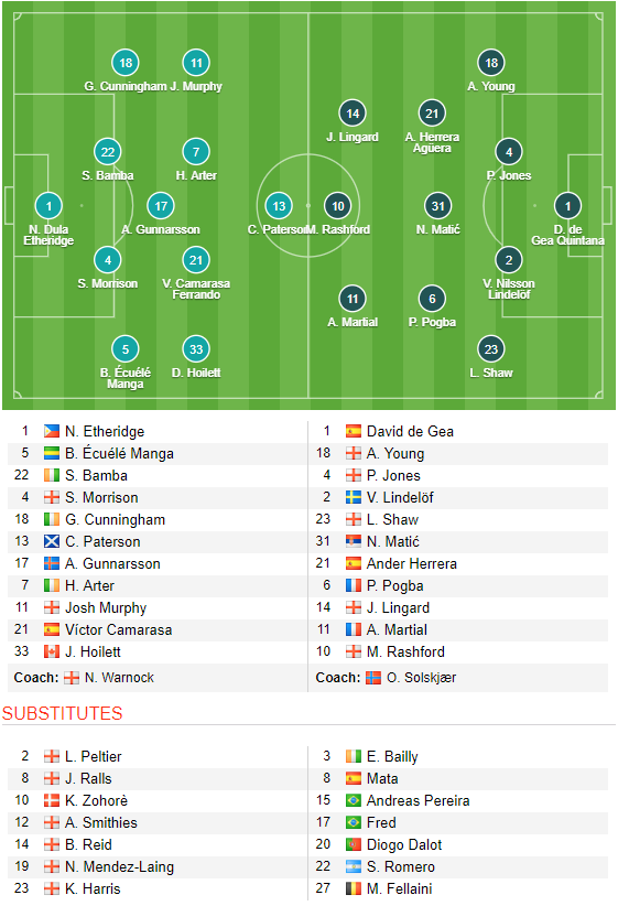 MU: Alexis Sanchez và Marcos Rojo không thể thi đấu do chấn thương; Luke Shaw, Chris Smalling, Lukaku và Scott McTominay bỏ ngỏ khả năng ra sân.