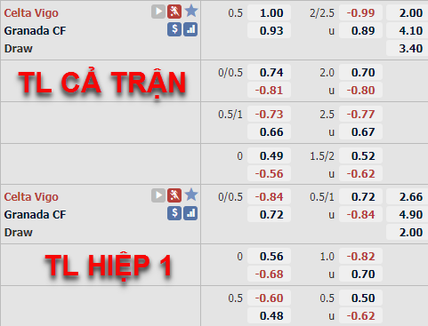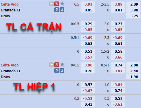 Tỷ lệ chính của trận đấu vẫn đang được duy trì ở mức chấp 1/2 của Celta Vigo như thời điểm chúng tôi cập nhật trước đây nhưng điểm ăn của đội chủ nhà đã được điều chỉnh tăng rõ rệt thời gian vừa qua. Diễn biến tương tự bên phía tỷ lệ tài xỉu khi mốc 2 1/4 vẫn được duy trì là mốc chính của trận đấu nhưng điểm ăn của cửa tài có xu hướng tăng điểm.