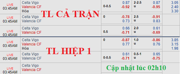 Sự thiếu vắng Aspas khiến niềm tin mà giới đầu tư dành cho Celta Vigo suy giảm rõ rệt. Đội chủ nhà vẫn ở thế cửa dưới với kèo được chấp 1/4 nhưng nếu như tại thời điểm trưa ngay 19/01, lợi nhuận bỏ vào cửa Celta ở mức 0.80 thì đến trước giờ bóng lăn chừng 30 phút đã nhích lên thành 0.87. Trong khi đó mốc tài xỉu gần như không có biến động gì đáng kể.