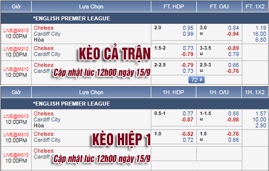 AEGoal.net chốt kèo trực tiếp trận Chelsea vs Cardiff sau khi dựa trên tính toán, chuyển động về kèo châu Á và đội hình ra sân của 2 đội.