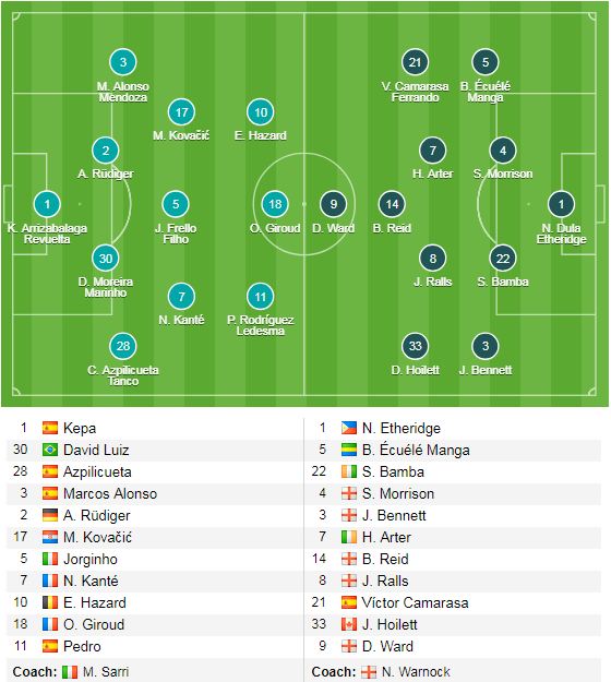 Cardiff (4-4-2): Etheridge - Manga, Morrison, Bamba, Bennett - Camarasa, Arter, Ralls, Hoilett - Ward, Reid.