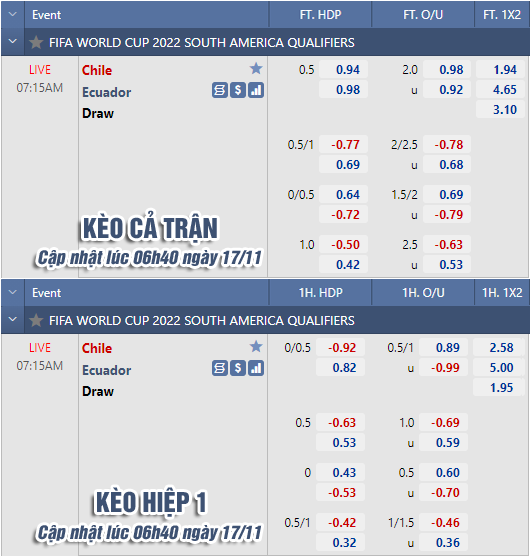 * Chốt kèo trận Chile vs Ecuador (07h15 ngày 17/11)