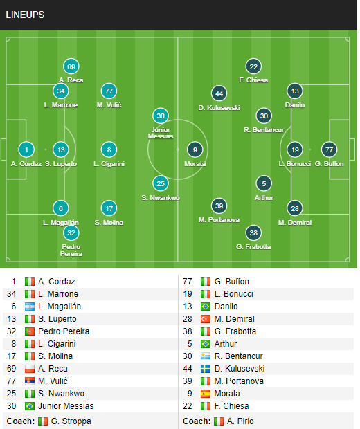 Sự thiếu vắng của Ronaldo đang khiến hàng công của Juventus đang trở nên thiếu đi sức sống rất nhiều ở chuyến làm khách lần này, nhất là khi HLV Pirlo còn tung ra đội hình với nhiều trụ cột được cất trên băng ghế dự bị.