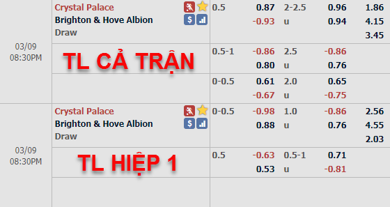 Tham khảo: Crystal Palace -1/2 cả trận và tỷ số chính xác 1-0