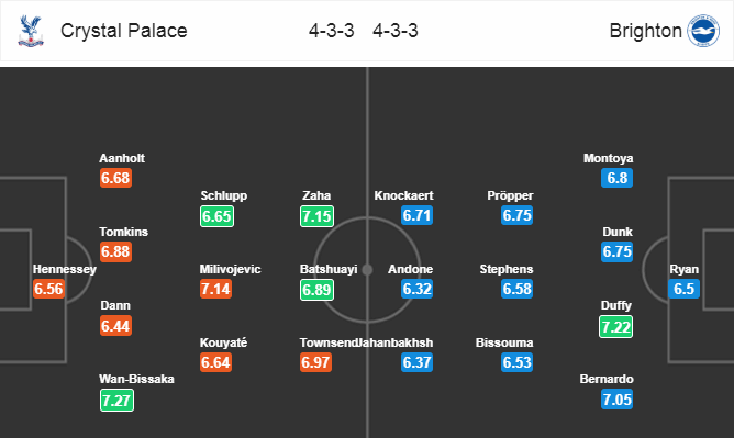 Đội hình của Palace có gần như đầy đủ các hảo thủ như Townsend, Milivojevic, Zaha hay Bashuayi, trong khi bên phía đối diện Gleen Murray không đá chính trận này. Về cơ bản, Crystal Palace hoàn toàn có thể giành chiến thắng tối thiểu.