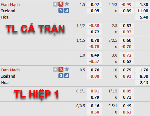 Tỷ lệ chấp 1 1/4 của ĐT Đan Mạch ở lần chúng tôi cập nhật trước đây đã được nhà cái châu Á đẩy lên mức 1 1/2 và mức điểm ăn cân bằng ở thời điểm hiện tại và tỷ lệ chấp của đội chủ nhà vẫn đang có xu hướng tăng điểm. Cùng diễn biến, bến phía tỷ lệ tổng bàn thắng, mức 2 3/4 đã được đẩy lên làm mốc chính của trận đấu thay cho mức 2 1/2 trước đây.